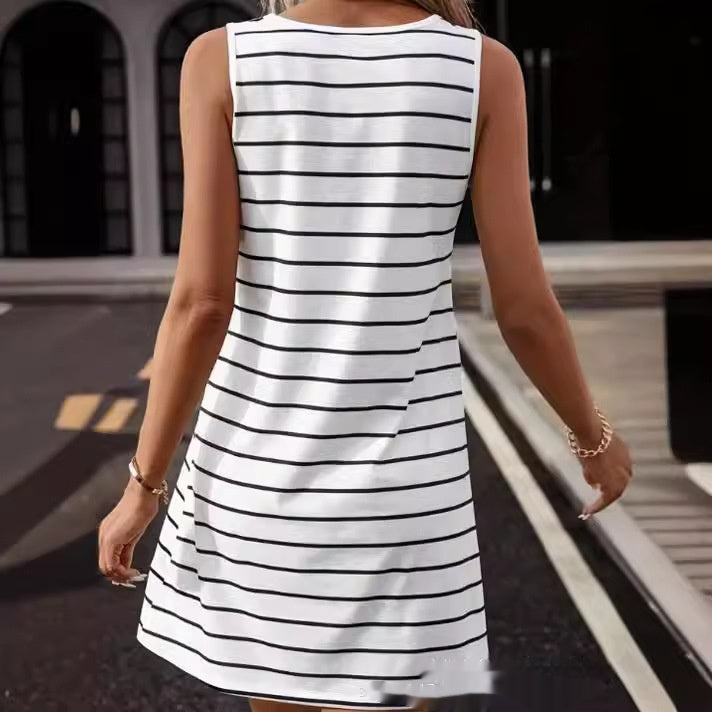 Free Shipping Orders Above $50Clean and comfortable, this sleeveless striped dress features a soft milk-silk fabric with a classic round neckline. Designed for easy everyday wear, it offers a polished yet relaxed look perfect for casual outings or workdays.